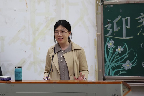 梁三姗作点评,她首先对双方辩手的精彩表现给予肯定,并根据具体辩论内容,针对性地提出辩手在辩论过程中要注重实例,要将论点与实际相结合,提高辩论说服力。最后,她表示此次活动加强了文学与传媒学院学生之间的友谊,也提升了学生的思辨能力,意义非凡。