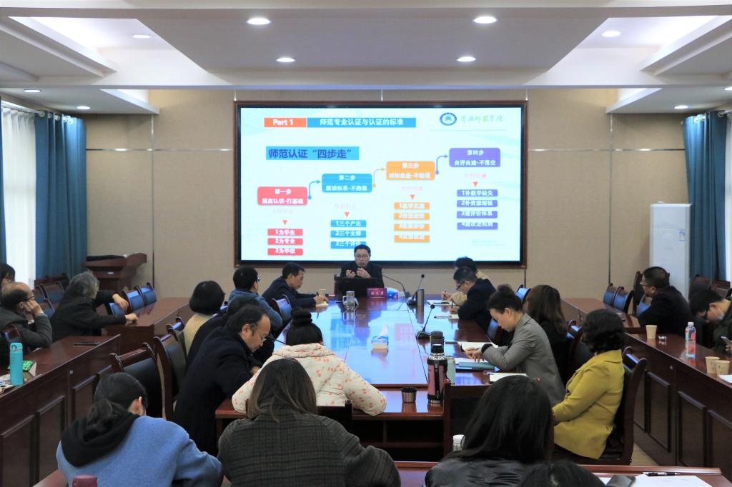 黄冈师范学院文学院副院长汤天勇为我院全体教师进行认证工作培训