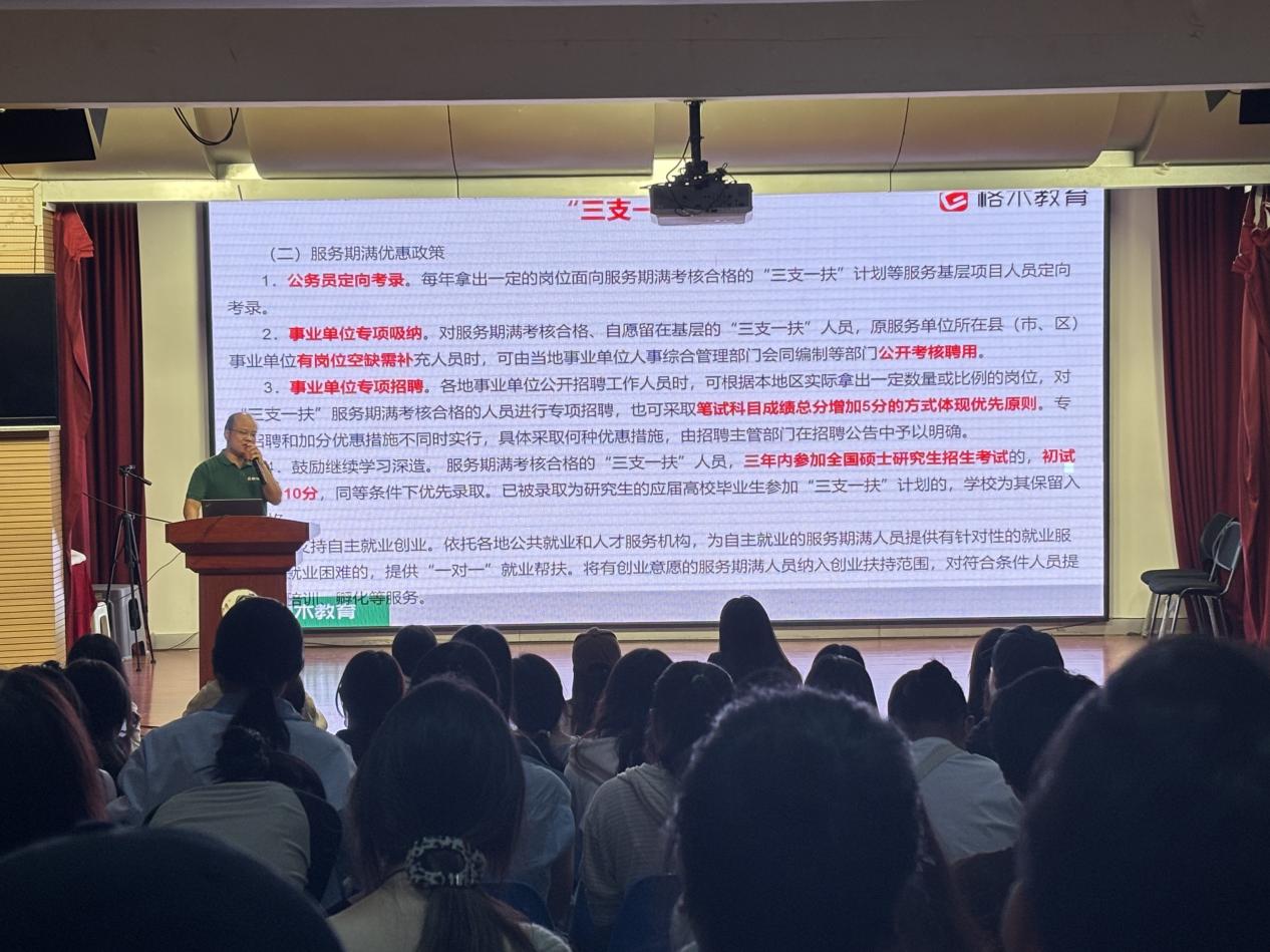 本网讯(通讯员 穆小雪)为帮助我院学子深入了解公职类就业路径,科学规划职业生涯。9月25日,我院特邀格木教育在文传楼演播厅举办了一场以“公职类就业规划——你的上岸之路有多远?”为主题的就业指导讲座。活动现场讲座中,主讲人程春生老师围绕公职类就业路径展开系统讲解,全面梳理了国家公务...