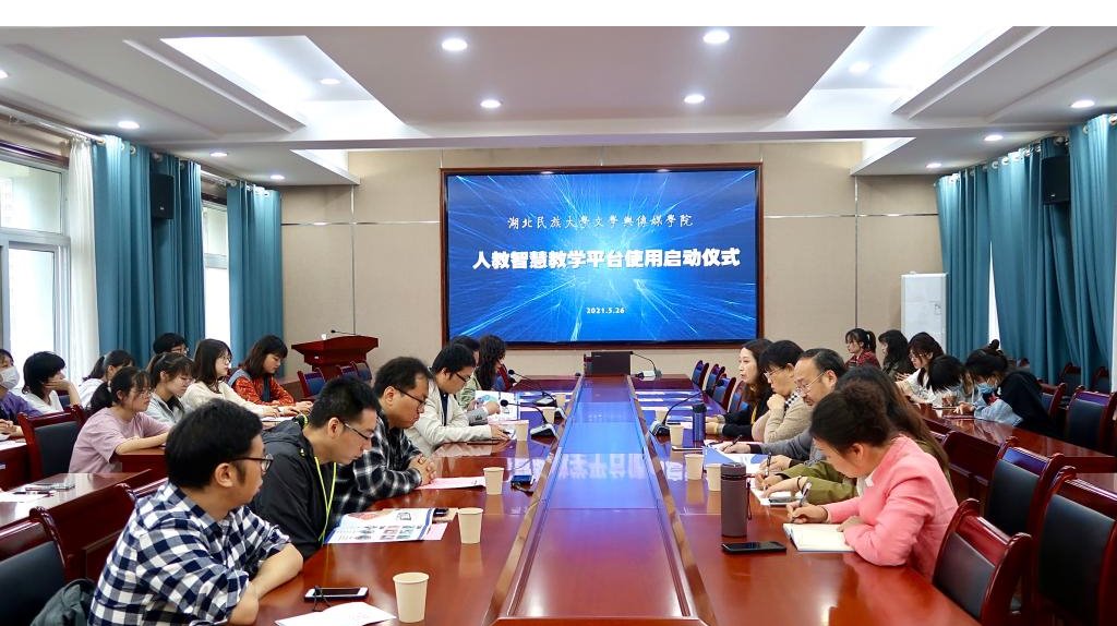 本网讯(记者 邢艺露)5月26日上午,人教智慧教学平台使用签约暨启动仪式在我院举行。文学与传媒学院院长罗翔宇、恩施州恒智教育科技公司总经理向宇、文学与传媒学院副院长何荣誉、校语委常务副主任郑艺、中文系教师代表及汉语言文学专业学生代表共计60余人参加仪式。人教智慧教学平台使用签约暨启...