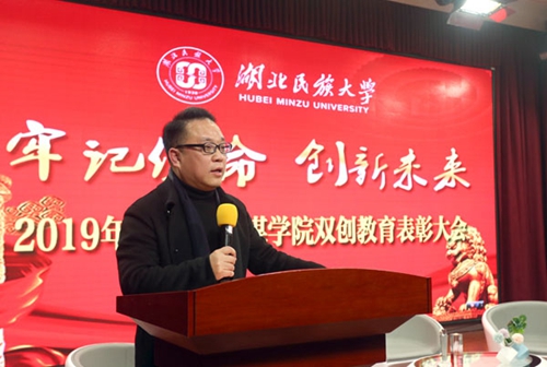 12月15日晚,文学与传媒学院在演播厅隆重举行“牢记使命 创新未来”2019年度双创教育表彰大会。学校党委委员、宣传部常务副部长唐敦双,教务处处长谭世明,科技学院院长廖云,教务处副处长谭华和创新创业教育学院副院长易金桥出席了表彰大会,并为相关学科赛事的获奖师生颁奖。△表彰大会现场△学校...