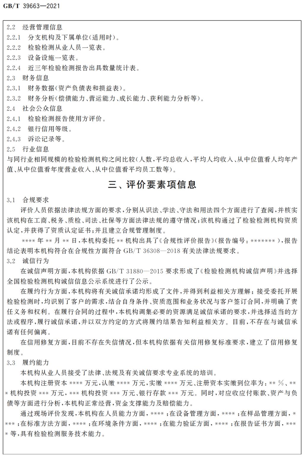 GB/T 39663-2021《检验检测机构诚信报告编制规范》于2021年4月30日经国家市场监督管理总局(国家标准化管理委员会)批准发布,自2021年11月1日起实施。