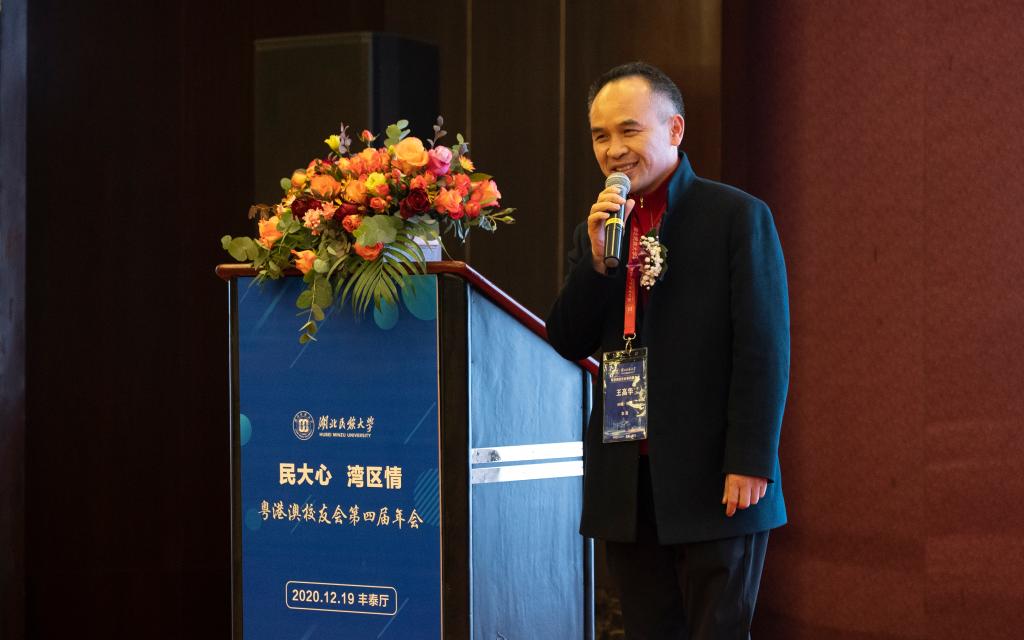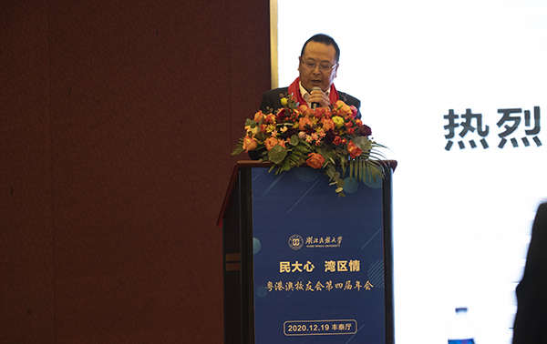 在校友交流和庆祝晚宴上,徐平会长代表粤港澳校友会讲话,他对母校领导、老师和同学们的到来表示热烈的欢迎,对莅临年会现场的各位嘉宾和校友们表示深深的感谢。他说:“因为民大情,我们在此欢聚;因为民大情,我们心联心。粤港澳校友会自2008年成立以来,已经成为民大湾区学子的精神家园和避风港湾,大家互帮互助、创造价值,实现了个人、母校和社会的多赢局面”。他深深祝福母校越办越好,希望广大校友根植于此,无愧于时代、无愧于母校!
