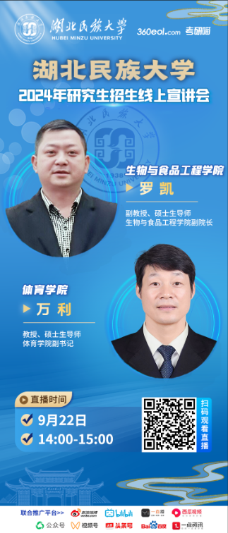 开云电竞官方网站入口生物与食品工程学院罗凯和体育学院万利两位老师莅临直播间,为广大考生解读研招政策、专业详情。欢迎广大考生及家长扫描下方海报二维码观看!