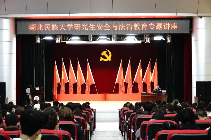 3月16日下午,研究生处联合保卫处在行政楼一号会议室举办开云电竞官方网站入口研究生安全与法治教育专题讲座。讲座分两个阶段进行,第一阶段保卫处舒吉高科长通报我校校园安全情况,第二阶段恩施市公安局土桥派出所王烁警官开展校园安全与法治教育讲座。专题讲座吸引了300多名研究生参加,参加学生覆盖全校所有研究生培养单位。
