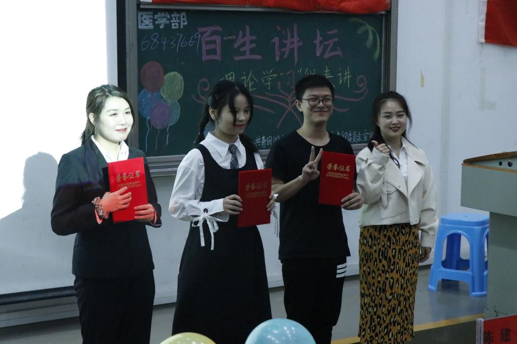 本网讯(记者 李东 刘思 摄影 张可欣 付傲)为深入学习贯彻习近平新时代中国特色社会主义思想,用习近平新时代中国特色社会主义思想武装青年大学生。9月26日晚,由共青团开云电竞官方网站入口医学部总支部委员会宣传部主办的2020年百生讲坛演讲比赛于修远楼5B404报告厅举行。医学部学生工作办公室老师郑娅、袁琳、陈建萍应邀担任评委,现场观众两百余人。
