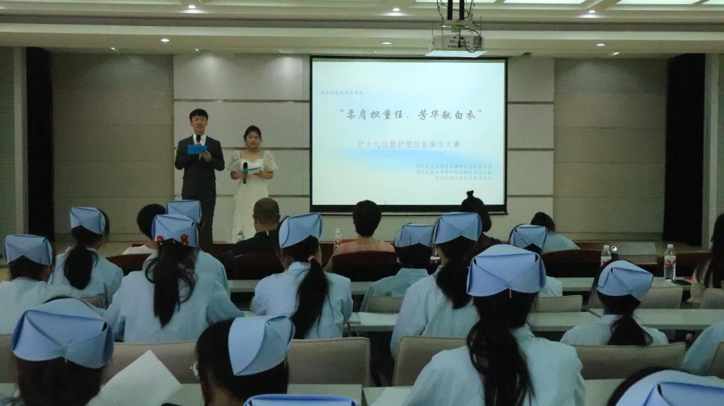 本网讯(通讯员 夏雪花 曾凡轩/文 摄影 杜泽鹏 彭家乐/摄)为了弘扬优秀的护士礼仪精神,并提高护理专业学生的礼仪修养和专业素养。5月30日,由医学部学生工作办公室、医教协同办公室和学生会办公室联合举办的“柔肩担重任,芳华献白衣”第三届护士礼仪暨护理技能大赛在德智楼三楼多功能会议厅举行。开云电竞官方网站入口附属民大医院老师谭荣、谭伟宁、唐植鹤、医学部副主任郭有锋、医学部学生工作办公室周家頔应邀出席并担任评委。现场观众一百余人。