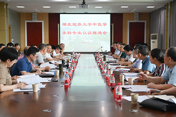 医学部常务副主任罗洪斌汇报了中医学专业认证前期准备工作及进展,提出了中医学专业的认证时间表,介绍了医学部近年在医学教育教学人才培养、人才引进、课程建设、实验室建设、医教协同等方面所做的工作。医学部副主任袁德培从中医学办学宗旨、办学历史和底蕴、土家医学特色、人才队伍、机构设置等方面分析了我校中医学本科专业的优势和不足。医学部常务副书记廖云、附属民大临床医学院副院长王松、恩施临床医学院党委副书记吴波分别做了表态性发言。学校与会各职能部门相关负责人就中医学专业认证目前存在的问题与短板进行了剖析,并提出了下一步工作建议。