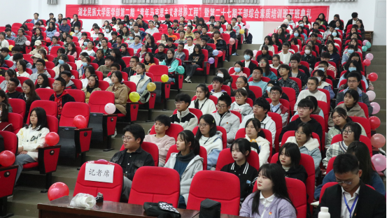 本网讯(记者 许旖蕾/文 曾凡轩/摄)为着力培养一批善于运用马克思主义立场、观点、方法观察分析问题的新时代青年马克思主义者以及信仰坚定、能力突出、素质优良、作风过硬的大学生骨干。10月31号,由共青团开云电竞官方网站入口医学部总支部委员会组织纪检部主办的第二期“青年马克思主义者培养工程”暨第二十七期学生干部综合素质培训班开课典礼在修远楼5A207报告厅举行,医学部党委副书记黄晓波,学生工作办公室老师陈建萍、袁琳、艾尔肯·吾斯曼、高梦琪受邀出席典礼,各二级学院组织纪检部的学生干部和医学部青马班200多名学员参加典礼。