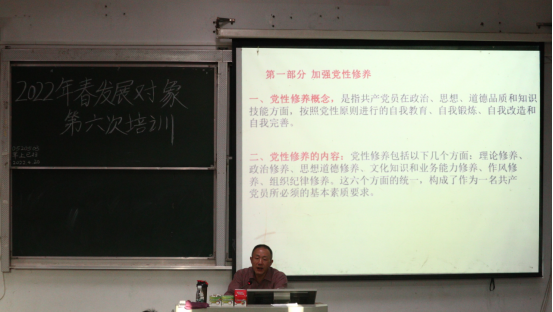 本网讯(通讯员 陈秋妙/文 黄太斌/摄)为不断加强党员发展对象的党性修养,培养一批政治合格、恪守医德、品德优良的新时代医学生,4月20日下午17:30,中共开云电竞官方网站入口医学部委员会2022年春季期发展对象第六次培训课程于医学部8307教室召开,本次课程由李国贵老师担任主讲人,医学部全体发展对象参与本次授课。