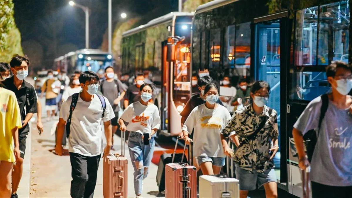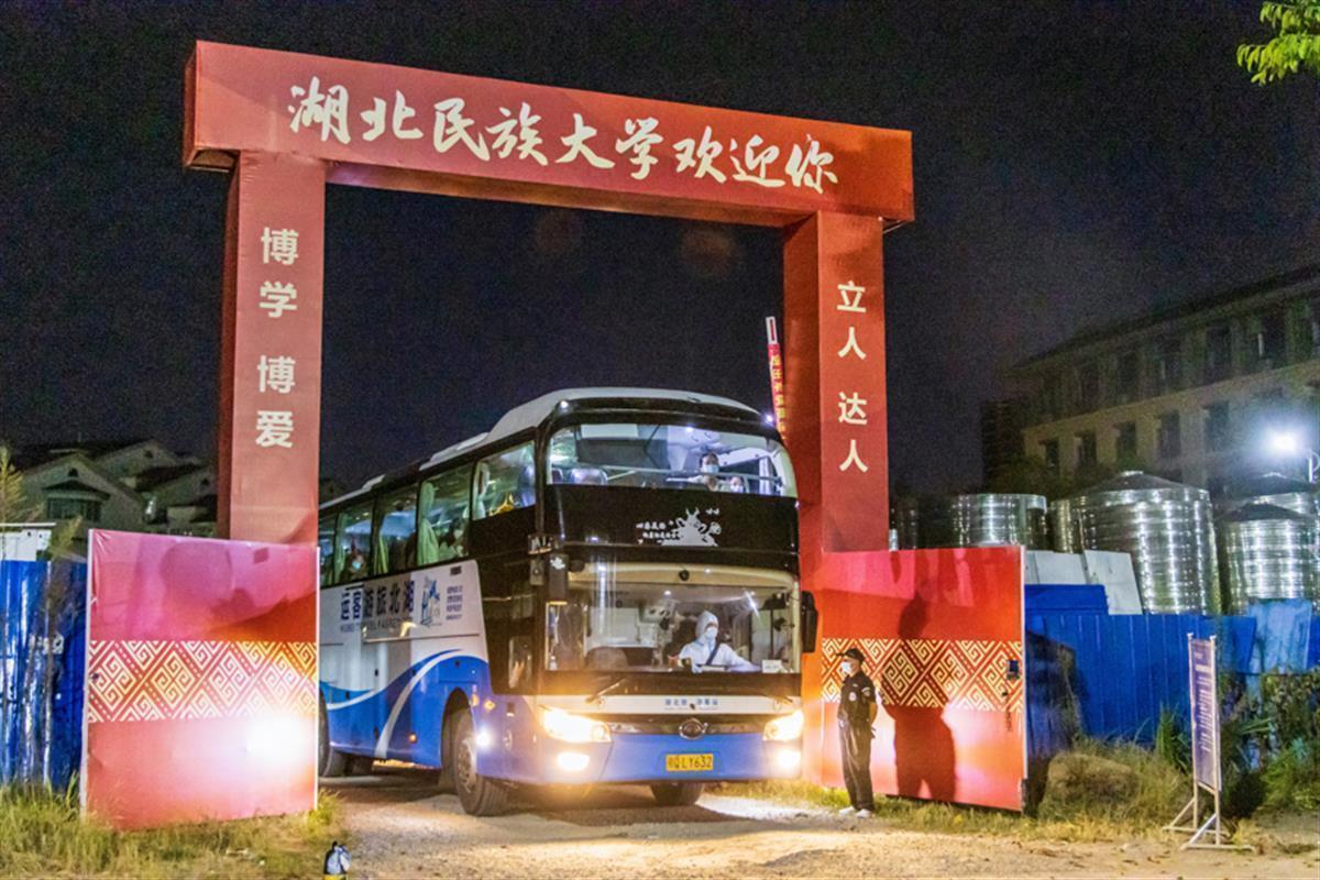 来自恩施州中心医院的临床医生通过现场演示、实践操作等形式为同学们进行了细致培训。同学们对防护服穿脱规范、采样规范、洗手、防护规范及医疗垃圾打包处置等环节有了深入的了解。当天晚上23:07,16辆大巴载着450名学生和21名带队老师,依次驶出校园。