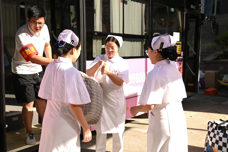 附属民大医院志愿者协助学生搬运行李