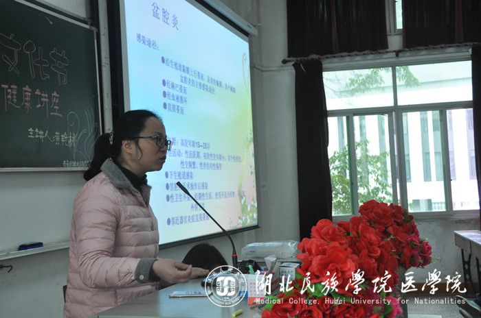 活动伊始,黄艳林从构造和功能两方面为同学们详细地讲解了女性生殖器官。其次,就多种女性疾病的病因、特点、发病部位及治疗方式等方面的内容进行了深入地讲解,并告知同学们生殖器官健康保健的重要性。随后,她还普及了现今多发性疾病乳腺癌的预防和治疗方法等医学常识,呼吁女同学们注意自身的日常保健。