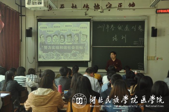 本网讯(通讯员 余秀/文 周蕾/摄 )为增强党员发展对象对党组织的了解,5月8日,我院学生党建工作委员会于8401教室对党员发展对象开展第九次培训,熊茂来主任以“践行社会主义核心价值观,努力实现‘中国梦’”为主题进行授课,我院51名发展对象参加此次授课。