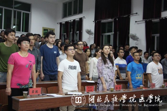 活动开始,全体起立奏唱国歌。接着,五位新疆毕业优秀生一 一上台向大家讲诉自己的大学经历。来自临床医学的伊尔夏提·吐逊江成功考入新疆当地医科大学的研究生。他在自己的成长汇报中讲到,在这几年的大学生活中,他积极参加学校的活动,充实自己的大学生活。他是我校M·E·C协会的最初创始人之一,也是协会的副会长,同时他也积极参考英语四、六级等考试,荣获"优秀三好学生"、"优秀学生干部"等称号。他从准确定位目标、清晰思想方向、自身考研经历三个方面向学弟学妹们讲解如何规划自己的大学生活,让同学们对自己以后得大学生活有了基本的定位。而其他四位优秀毕业生也分别从自身的经历讲诉了自己的大学生活,同时他们都在自己的汇报中讲到,一定要加强自身的思想意识,要热爱祖国,维护民族团结,也告诫自己的学弟学妹们一定要相信自己的能力,只要努力一定能成功。
