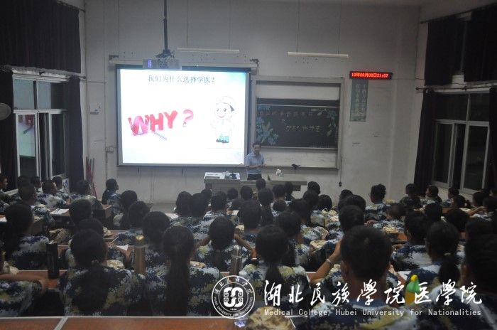 本网讯(记者 方琼 杨柯/文 熊慧雯 杨漫丽/摄 )9月13日,由学生科举办的以“奋斗的青春最美丽”为主题的专题讲座在8305教室进行。此次活动由学生科张鼎老师主持,陈显兵教授主讲,100多名2017级临床专业新生参加。