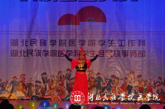 本网讯(记者 郭曼 余秀 通讯员 黎晓容/文 熊慧雯/摄 )为加强各民族之间交流,增进民族友谊,增强民族凝聚力,12月5日,医学院在音乐舞蹈学院演播厅举办“民族之新”大赛决赛。校民族事务部和民族事务办公室主任谢晖,医学院党委副书记张蕊,学生科长向驰,学生科老师周家頔、梁丹玉,教育学院学生科科长张妮燕应邀担任评委,特邀医学院学工处老师阿布都、阿巴斯、吕波等出席,近百名观众观看现场比赛。