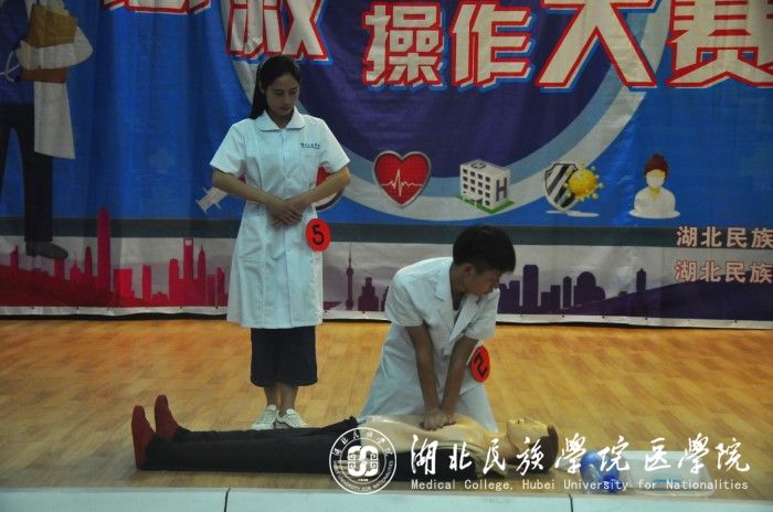 本网讯(通讯员 卢天琳 黎晓容/文 富珂 吕丰旭/摄)为了普及急救知识,提高学生自救互救的能力,5月18日,我院在行政楼一号会议室成功举办第三届急救知识操作大赛。本次大赛特邀民大医院急症科主任向毓明、民大医院急症站站长刘儒品、民大医院急诊科副主任兰亚明、民大医院急症科主治医师代辉,我院副院长罗洪斌应邀出席并担任评委,此外出席嘉宾还有我院院长刘红,我院党委副书记张蕊。大赛吸引了200余位学生前来观看,现场学术气氛浓厚。