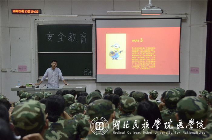 本网讯(记者 黄鑫 李明辉/文 吕丰旭/摄)9月13日,我院团总支组织纪检部于医学院8206、8405教室举办新生入学教育之安全教育。我院学生科老师周家頔、张鼎应邀担任主讲人。我院18级新生聆听讲座。