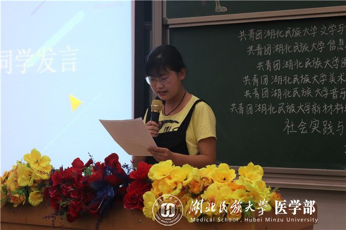 大会伊始,全体起立奏唱《青年志愿者之歌》并观看六院志愿服务视频。其后,由医学部2018级新生代表刘梦梅发言,她表示一年的志愿活动让她得到锻炼,提高了胆量、语言表达能力和应变能力,同时她为自己能献出爱心而骄傲。接着,赖秦宽和周承珍用亲身经历为切入点告诉志愿者们志愿者在志愿服务应当“用心用力用情”,以提升自己的价值。吴陶也向参会人员介绍了恩施州红十字志愿服务队的情况,并对我校志愿者的辛勤工作给予了肯定,同时给在座的志愿者们分享了几点建议:一是不忘初心,始终保持一颗无私奉献、不求回报的爱心;二是持之以恒,根据自身实际、力所能及地参与各项志愿服务;三是认真总结,并在志愿服务中不断完善;四是健全机构。最后,在提问环节,吴陶对“如何把志愿服务活动坚持下来”作出了解答。她说道:“首先应该做好思想准备,想清楚后再加入。加入志愿服务后,应该有合理有效的志愿者制度,比如说她们必须保证一年要有24小时服务时间”。