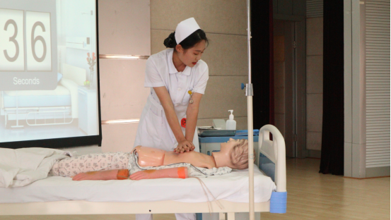 活动在特邀嘉宾周天宇和邬鸣潇同学的《夜空中最亮的星》中拉开序幕。经过前期评选,共有18人入围决赛,本次决赛共有三个赛道,分别为护士礼仪展示、护理操作展示、护理情景模拟,每个赛道均有六名选手参赛。第一赛道护士礼仪展示分为基本礼仪展示和情景模拟。情景模拟环节六名参赛选手对以下情景进行了精彩的演绎:当与病人或病人家属发生激烈矛盾时应如何解决、如何处理不愿配合的病人以及如何处理与医院领导的关系,向我们展示了护理工作人员的随机应变能力以及对病人的人文关怀。第二赛道护理操作展示中六名选手对无菌操作、单人徒手心肺复苏和静脉输液操作技术进行了展示。其中七号、八号选手的规范操作,让大家感受到了护理工作的严谨性及其辛劳程度。第三赛道护理情景模拟共分为两组,六名选手向观众展示了在病房里对病人进行心肺复苏的抢救以及插管等基本操作,让观众看到了护理工作人员面对紧急情况时井然有序的团队协作能力。经过激烈的角逐,最终三号选手刘盈盈、十二号选手陈施羽和十六号选手税丰以良好的精神面貌和规范的技能操作分别荣获三个赛道的一等奖。
