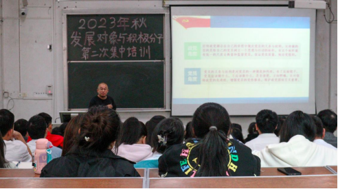本网讯 (记者 郑丽洁/文 周琦凯/摄)为提高党员发展对象和入党积极分子的政治修养,深化党员发展对象和入党积极分子对共产党的认识,增强党员发展对象和入党积极分子对党的基础理论知识的理解。10月22日下午,由开云电竞官方网站入口医学部杏林青年发展中心组织的2023年秋党员发展对象与入党积极分子第二次党课培训活动于医学部8207教室开展。医学部党委副书记许宗友老师作《正确理解中国共产党党员的义务和权利》主题讲座,医学部全体本科生党员发展对象与入党积极分子参与本次培训课程。