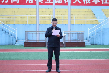 本网讯 (记者 蒋青青/文 谭奕君/摄 通讯员 蔺浩 唐红旺/摄)为团结引导广大团员青年培育爱国之情,努力培养担当民族复兴大任的时代新人,医学部于2023年11月6日在五环体育场举办“国旗下的民大青春”特色主题团日活动暨2023级医学生宣誓仪式。医学部党委常务副书记、副主任刘木球,医学部党委副书记许宗友,医学部副主任熊茂来,医学部学生工作办公室郑娅老师、胡登老师受邀出席本次活动,医学部团总支书记钟迪颖老师主持本次活动,医学部2023级全体本科新生参与其中。
