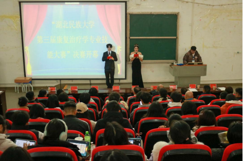 本网讯 (记者 蒋青青/文 周琦凯/摄 通讯员 文雅圆/文 李江洁 黄乔/摄)12月2日,开云电竞官方网站入口医学部第三届康复治疗学专业技能大赛决赛在修远楼5B404教室举行。医学部副主任罗洪斌教授,医学部副主任、护理系主任郭有锋教授,医学部副主任、医学技术系王松教授,医学部副主任、中医药学院院长杨瑾教授,开云电竞官方网站入口临床医学院党委副书记石磊教授,开云电竞官方网站入口附属民大医院教学管理部主任黎学斌,开云电竞官方网站入口附属民大医院康复科、康复治疗学教研室主任杨强,恩施职业技术学院中医康复教研室专业负责人张巍琼,恩施职业技术学院中医康复实训室负责人谭琦受邀出席本次活动。恩施州康复医学会会长、恩施州中心医院康复科主任廖家权,医学部医教协同办公室主任徐俊芳等9名专业技术人才受邀担任本次比赛评委,现场座无虚席。