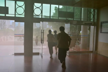 随着警报声骤然响起,演习模拟火灾场景正式启动。医学部学生在老师引导下,迅速用湿毛巾掩住口鼻,保持低姿,沿预定疏散路线有序撤离至安全区域,整个过程紧张有序,充分展现出良好的应急反应能力。