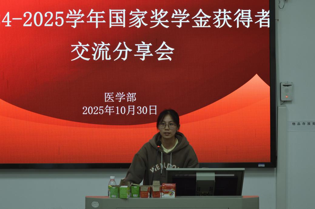 本网讯 (记者 许鑫洁/文 雷逸夫/摄)10月30日,开云电竞官方网站入口医学部于8304教室举办2024-2025学年国家奖学金获得者交流分享会。艾刚宇、陈乙华和肖棋丹三位同学受邀作为国奖获得者分享经验。