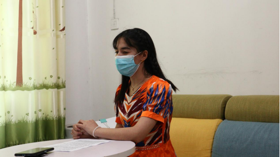 努尔古丽·外力与采访者合影