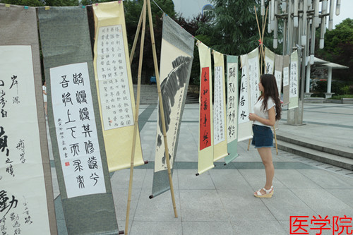 本次活动共征集到243副书法作品,包括教师作品6副,往届作品66副。其中展出教师作品6副、学生作品94副。其中一幅《枇杷山鸟》:“梦觉只闻铃索响,不知山鸟咏枇杷”,书画结合的画面让人眼前一新。另一幅《梅》:栩栩如生的梅花上面提写着“梅自傲骨,吾自清廉”的绝佳诗句。之后,叶文美老师还给现场作画的同学讲解了提笔书写的方法技巧。