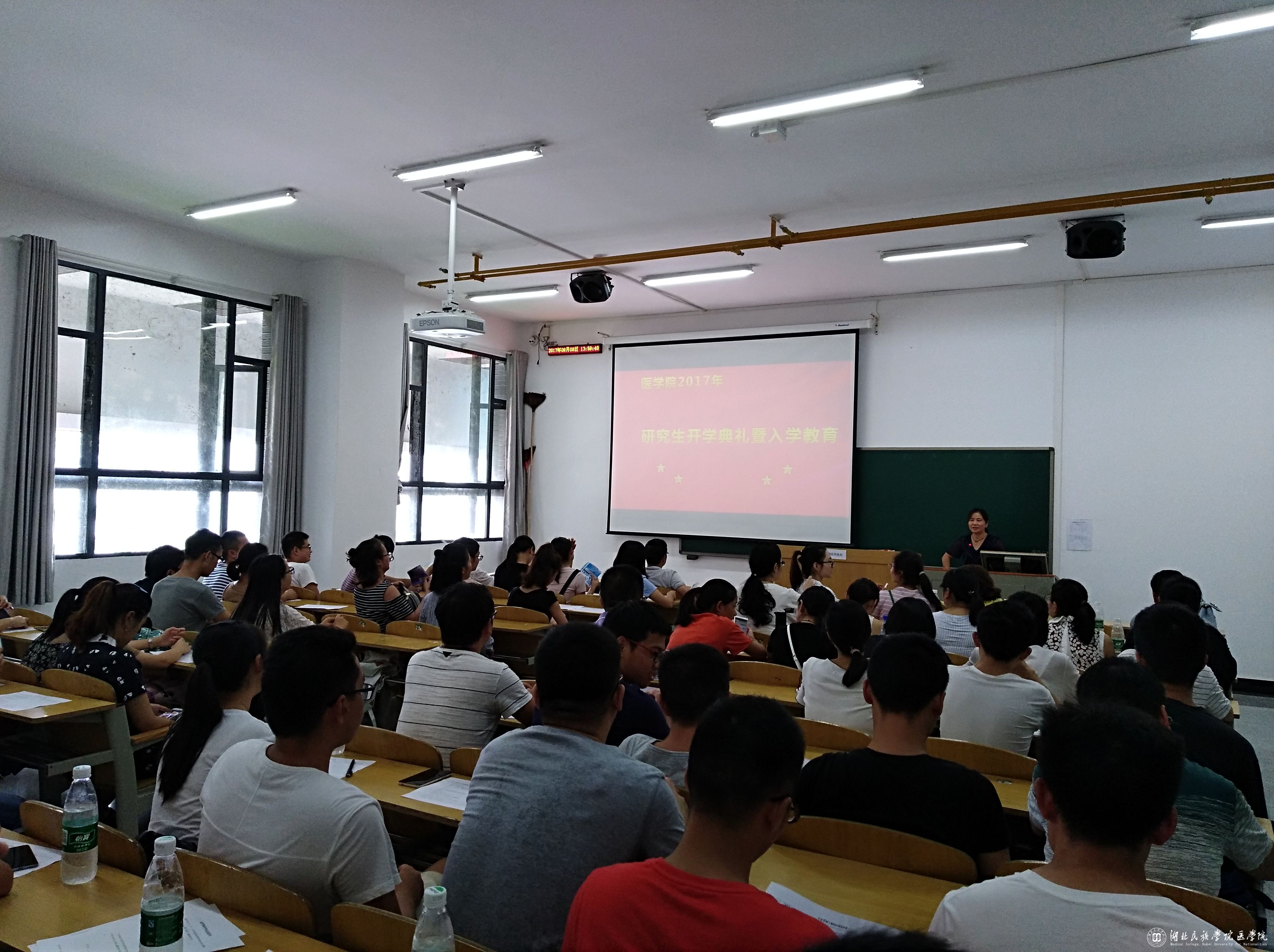 9月9日下午,医学院2017级研究生入学教育在修远楼5B207教室召开。医学院院长、党委书记刘红教授致辞,学科建设科黄胜博士、涂星博士分别为研究生新生做了专题报告,入学教育大会由学科建设科田春漫科长主持。2017级科学学位和专业学位全体硕士研究生新生参加了本次入学教育大会。