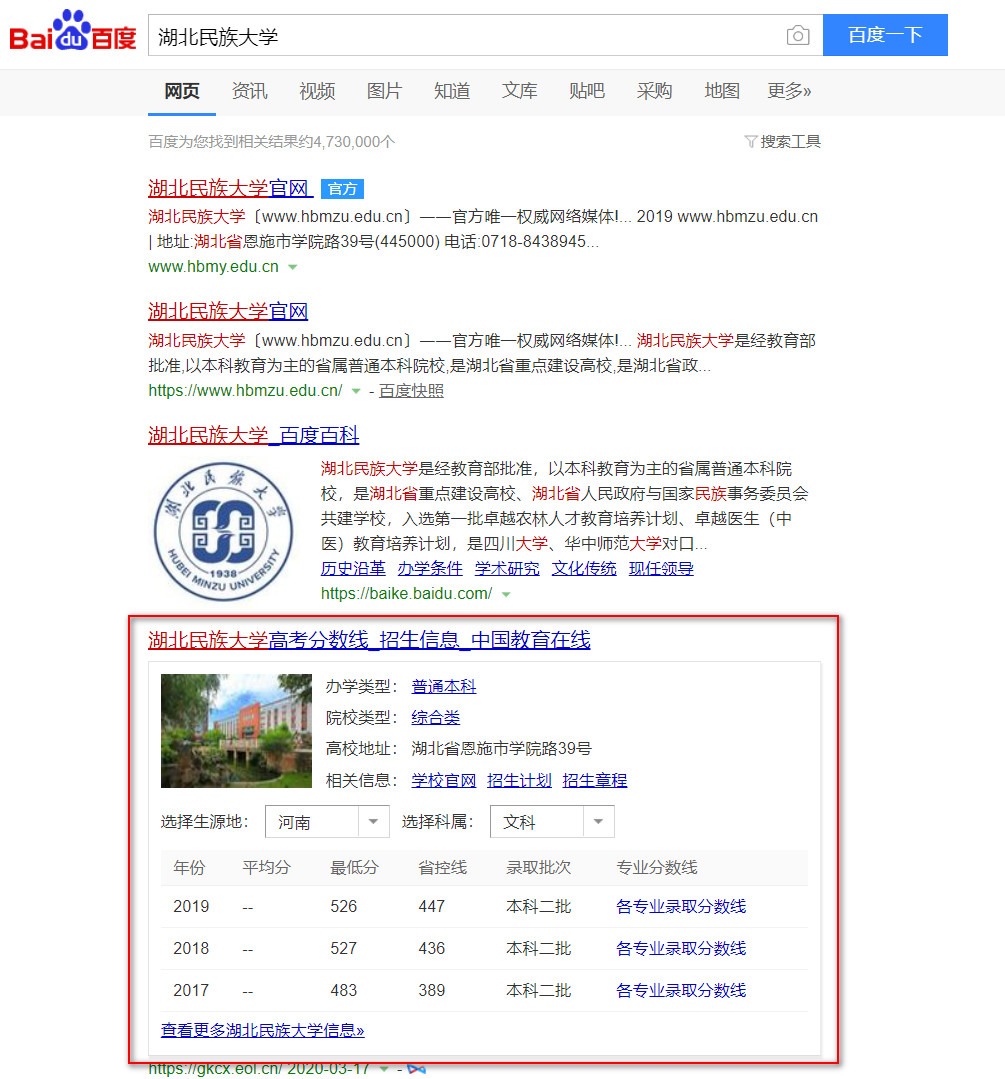 ➤搜索“开云电竞官方网站入口”(图3),即可进入中国教育在线高考数据库页面;