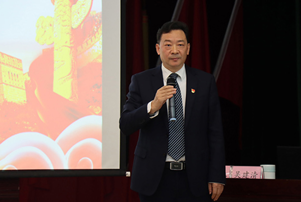 本网讯 10月8日,党委书记吴建清教授在行政楼1号会议室为我校青年马克思主义者培养工程学员及300余名本科生代表讲授专题思政课。思政课由学生工作部(处)长向政主持。