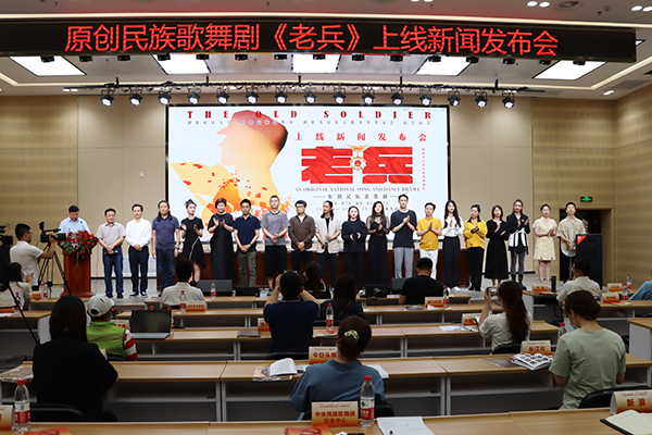 本网讯(记者 张倩雯)6月10日上午10:00,由我校和中央民族歌舞团、湖北省民宗委联合举办的原创民族歌舞剧《老兵》上线新闻发布会在恩施州广播电视台多功能会议室举行,我校党委常委、副校长、原创民族歌舞剧《老兵》监制邓磊,中央民族歌舞团副团长、国家一级演员、原创民族歌舞剧《老兵》艺术总监卢云升,湖北省民宗委民族二处处长、原创民族歌舞剧《老兵》协调统筹谭兵,中央民族歌舞团国家一级编导、原创民族歌舞剧《老兵》总导演邓兰英受邀出席。我校党委宣传部常务副部长唐敦双主持发布会。