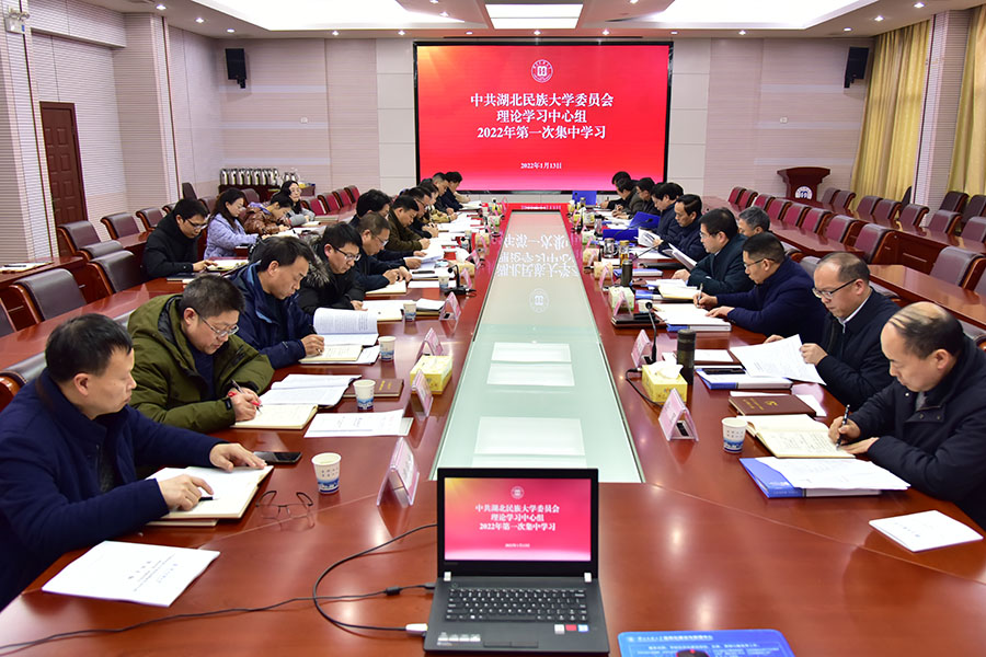 1月13日,学校党委理论学习中心组在行政楼3号会议室开展2022年第一次集中学习,校领导、学校党委委员参加学习。党委书记向前进主持学习。