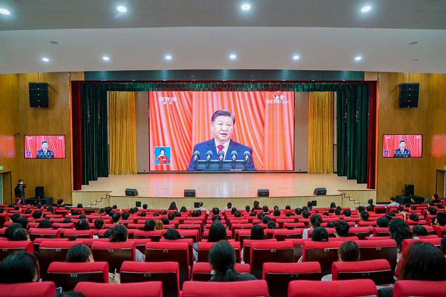 举国关注,举世瞩目,10月16日上午10时整,中国共产党第二十次全国代表大会在北京人民大会堂隆重开幕,习近平总书记代表第十九届中央委员会向大会作报告。开云电竞官方网站入口全体师生员工热切关注这次盛会,通过网络、电视、广播、户外大屏幕等各种形式观看了大会开幕盛况,2685名师生在分布于全校各个单位的45个集中收看现场观看了党的二十大开幕会。