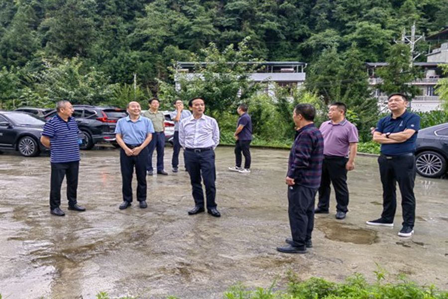 党委书记向前进(左三),党委常委、副校长李军(左二)赴马前村调研指导乡村振兴工作